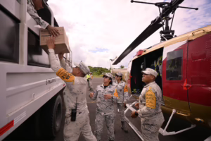 Subrayó que el apoyo del Gobierno de México, de diversas entidades federativas y brigadistas voluntarios, ha permitido avanzar en las labores de limpieza, restablecimiento de caminos y atención directa a la población.